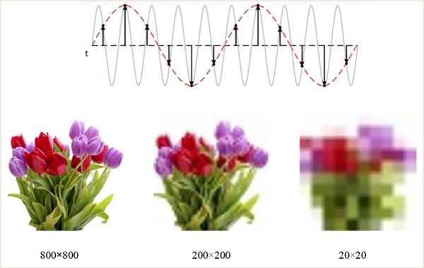 我在教授《现代通信原理》课程中发现课程内容体系繁杂,有限的课时无法容纳大量的教学内容,学生总是不易理解涉及大量公式推导的教学内容。结合自身工作经历,我对教学内容进行创新,把抽象的通信问题形象化,引入三维重建技术之傅里叶变换轮廓术。其过程以物体三维面形作为基带信号,投影载波条纹图,并拍摄得到调制信号,将调制信号傅里叶变换到频域得到调制信号的三维频谱图,通过展示三维频谱图,讲解零频、基频中心、频谱的分布等概念,使学生认识了调制原理、滤波这些贯穿课程始终的核心知识。在低通抽样定理中讲解“抽样频率大于等于2倍信号的最高频率”时,与《数字图像处理》课程中图像抽样过程进行对比分析,当采样图像分辨率过低时会出现严重的棋盘格效应,与低于2倍信号的最高频率的一维信号抽样无法恢复正常的波形图类比,增加学生对抽样定理的认识,如图1所示。2022年初,《现代通信原理》课程组创新教学获得了教学创新大赛校级二等奖。